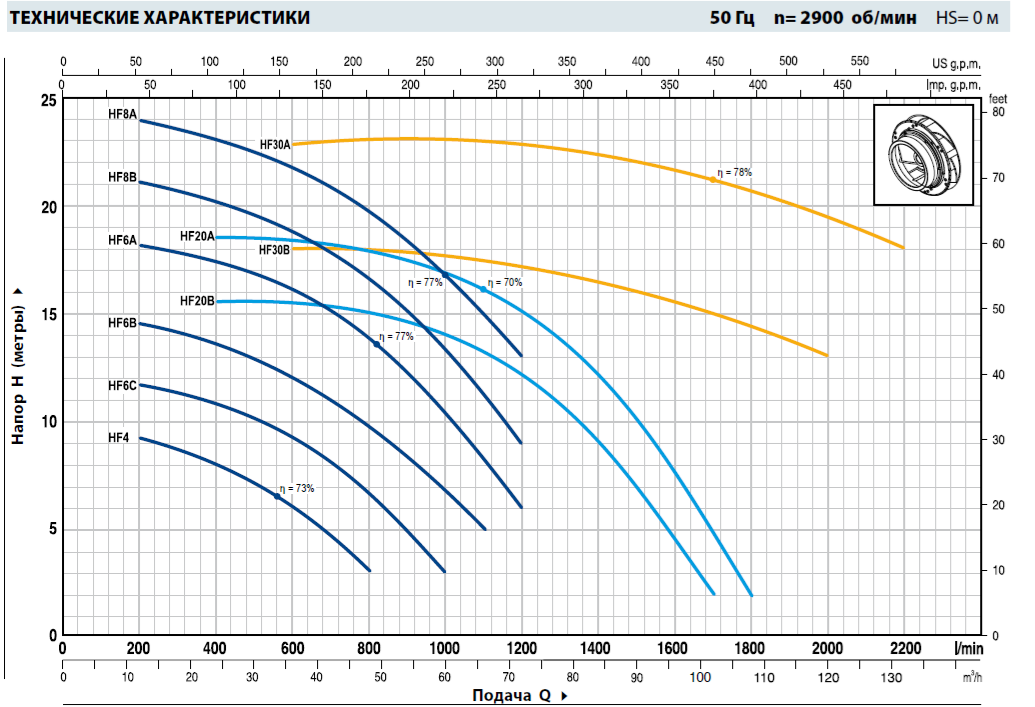 Насосы серии HF специально созданы для применения в промышленности, сельском хозяйстве, быту. Это обеспечили не только эксплуатационные характеристики оборудования, но и механическая концепция и грамотный подбор используемых материалов. Специально разработанная форма рабочих колес и спиралей, которые характеризуются широкими проходами, дает возможность использовать насосы для перекачки чистой воды и жидкости средней степени загрязненности. Высокий коэффициент полезного действия в совокупности с возможностью применения в режиме высоких и длительных нагрузок позволяет успешно применять оборудование для дождевания, самотечного орошения, отбора воды из рек, озер, колодцев. Также насосы можно использовать в различных отраслях промышленности, когда нужно получить высокие показатели подачи при низкой и средней величинах напора.