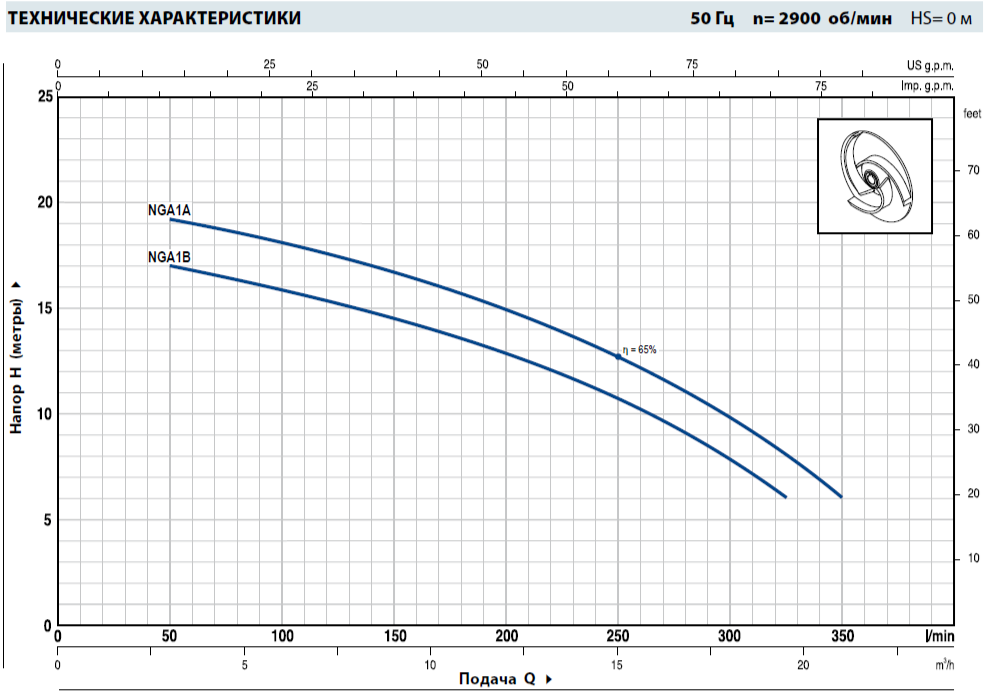 Серия NGA включает в себя водяные насосы центробежного вида, которые имеют рабочее колесо открытого типа. Оно состоит из лопаток и заднего диска и качается на ведущем валу. Лопаточный канал состоит из: