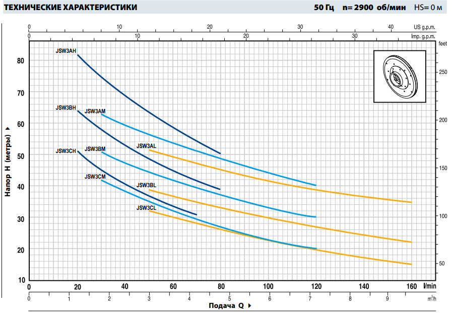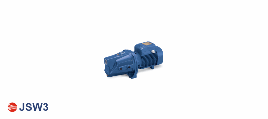 Серия JSW включает в себя САМОВСАСЫВАЮЩИЕ ЭЛЕКТРОНАСОСЫ ЦЕНТРОБЕЖНОГО ТИПА. Эффект самовсасывания достигается благодаря эжектору, установленному в корпусе насоса. Только часть общей подачи жидкости, выработанной рабочим колесом закрытого центробежного типа, направляется в нагнетательный патрубок; оставшаяся часть рециркулируется посредством эжектора, который, будучи соединен с камерой всасывания, создает в ней разрежение, необходимое для самовсасывания. При первом запуске достаточно заполнить водой корпус насоса. Заполнять всасывающий трубопровод и удалять возможно присутствующие воздушные пробки нет необходимости. В момент запуска вода, содержащаяся в корпусе, циркулируя через эжектор, переместит воздух из камеры всасывания в нагнетательную камеру, выталкивая его через выходной трубопровод. Образовавшийся таким образом вакуум приведет к подъему уровня воды во всасывающем трубопроводе, вызывая явление самовсасывания.